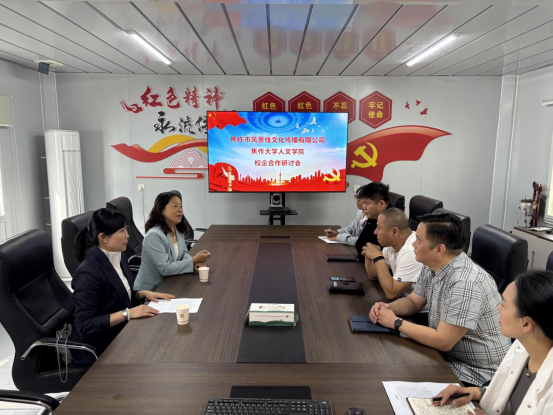在焦作市风景线文化传播有限公司,企业负责人介绍了公司发展现状和人才需求情况。校企双方围绕行业发展趋势、人才培养模式创新等议题展开交流,并表示希望今后加强沟通协作,互利共赢。